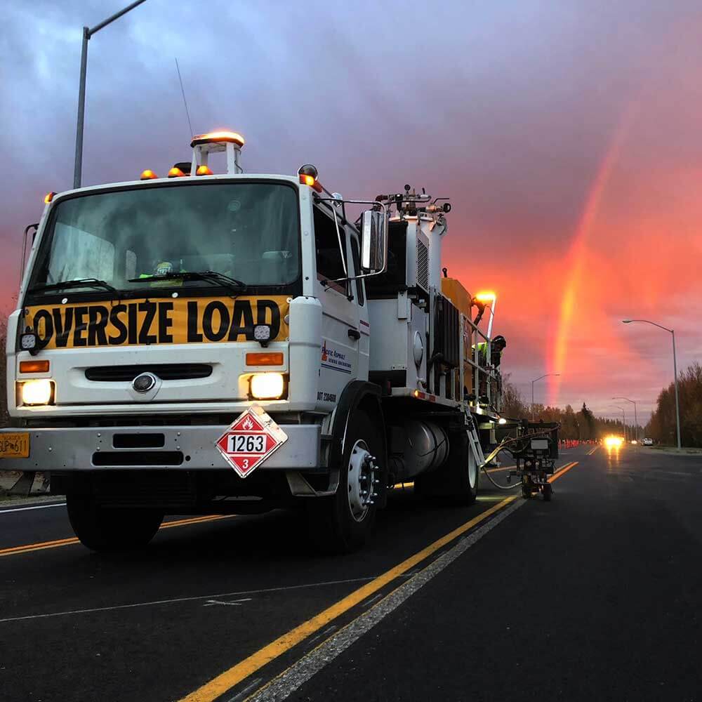 Trusted by The Department of defense, State of Alaska, Corps of engineers, local governments and businesses. We are an industry leader in providing all types of pavement and concrete markings and maintenance. MMA, Low Voc, Inlaid, Rubber removal, Grooving, Joint sawing / sealing, Bridge decks, High friction surface treatments, Surface sealers, Rumble strips and Tennis courts are some of the areas we specialize in.
